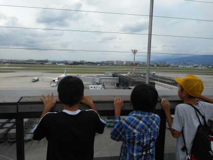 伊丹空港で飛行機が飛び立つ時を眺めながら,お弁当を食べました。