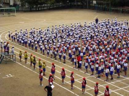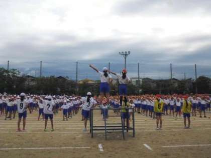 雨のため,延期になっていた全校練習が行われました。全校児童が運動場に並び,全校ダンスの練習をしました。係りの子どもたちが前に出て,全校ダンスをていねいに教えてくれました。初めて合わせたのに,ぴたっと合う場面が何回もあり,本番までにもっと練習をして,素晴らしいものを見せてくれることを楽しみにしています。