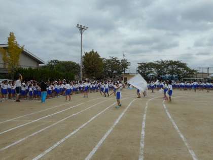 各色200人ほどの児童が精いっぱい応援します。