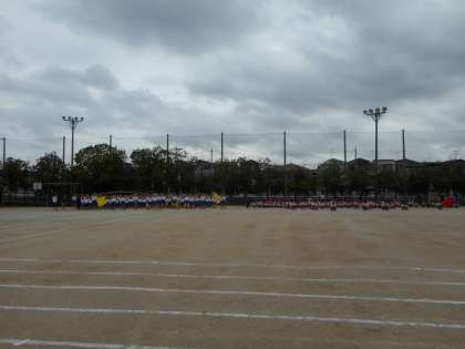 全校練習でエール交換の練習をしました。