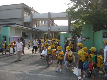 長い夏休みが終わり,子どもたちが元気な姿で登校しました。