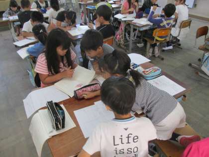 グループで学びを深めていました。しっかりと文章に立ち返って確認をする姿があり、すばらしかったです。