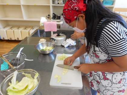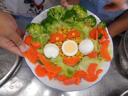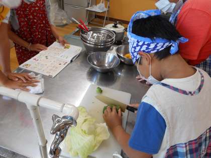 班で協力して野菜を洗ったり,切ったり,ゆでたり,ドレッシングをつくったりしてとても上手に作ることができました。