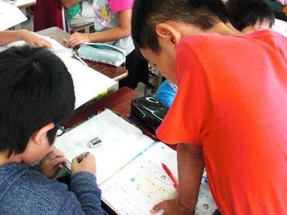 算数の問題が早く解けたら仲間に教えにまわります。
