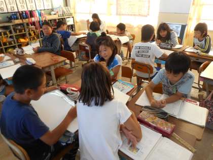 四角形を対角線で2つの三角形にして解くということをグループのみんなで話し合いました。