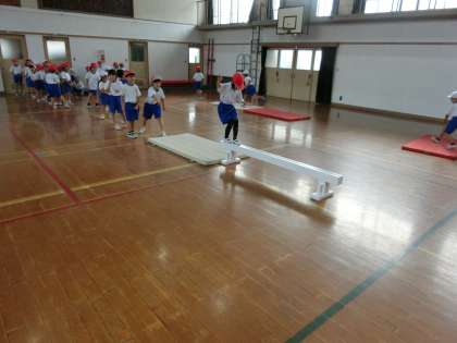平均台や,マット運動をしました。