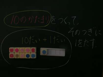 子どもたちは,「そうか。10のかたまりをつくるとわかりやすくなる」と感想を述べていました。