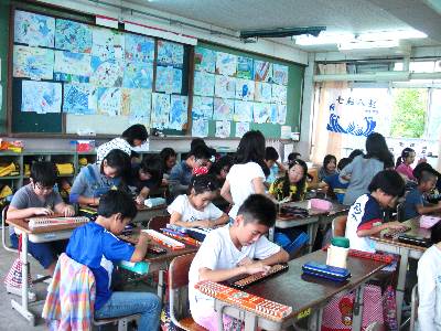 そろばんを習っていて得意な人が教えてまわり,協力して学習していました。