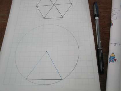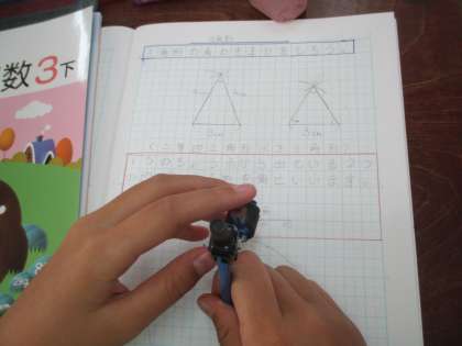 円や紙を使って二等辺三角形や正三角形を作る活動を通して,それぞれの三角形の性質をみつけました。