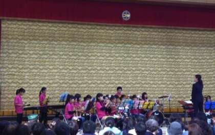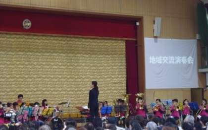 30日の日曜日に,神川中学校の体育館で,地域交流演奏会が行われました。神川中学校区の4つの小中学校の部活動などで練習した成果を地域の方々に披露しました。羽束師小学校のブラスバンド部は2曲演奏しました。