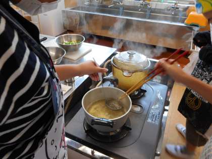 どの班もほかほかのご飯とおいしいみそ汁が完成しました。