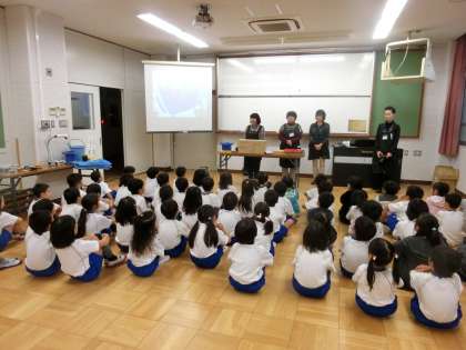 多目的室で,花育について紙芝居などを見た後,