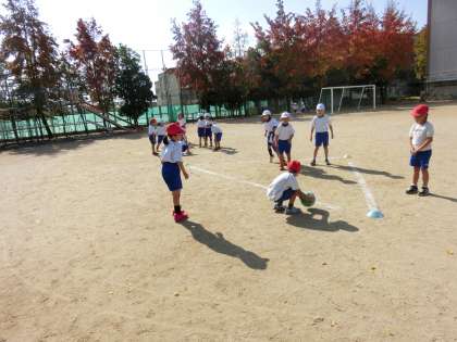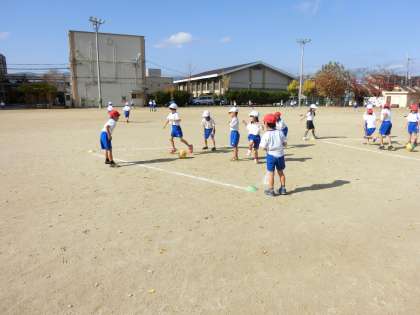 転がったボールから上手に避けています。また,上手にボールを転がすことができました。