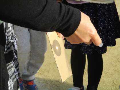虫眼鏡で光を集めたときの明るさや暖かさを調べました。
