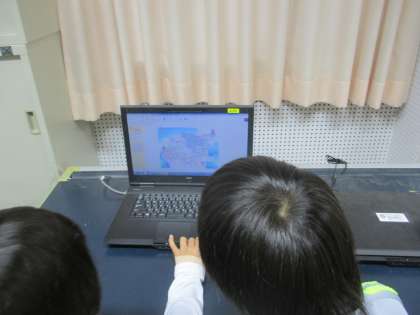 総合的な学習の時間に,コンピューターを使って,ローマ字打ちをしたり,調べたいことを検索したりしています。