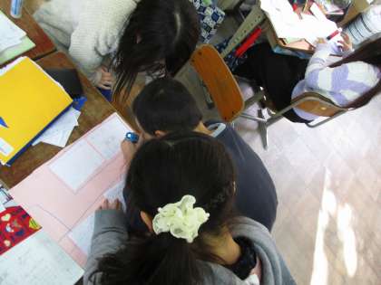 水菜作りの工夫をまとめています 【3年生】