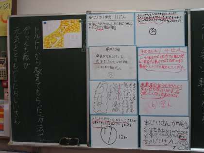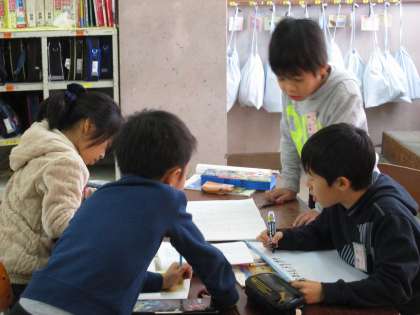 今日は挿絵からどんな場面かを班で話し合って