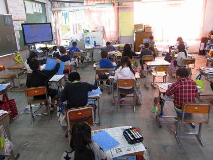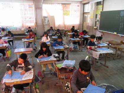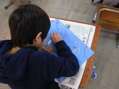 図画工作は版を使って,動物を中心とした版画をしています。