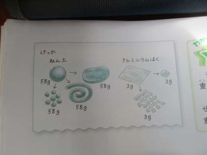 アルミニウム箔の形を変えたときや細かく切ったときの重さを調べました。