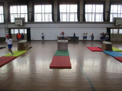 体育館で,とび箱運動をしています。