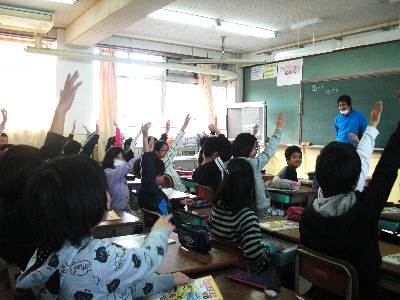 多くの人がしっかりと手を挙げて楽しく授業に参加しています。