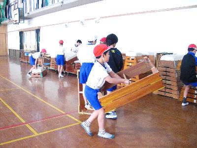 体育「跳び箱運動」の後片付けの様子です。