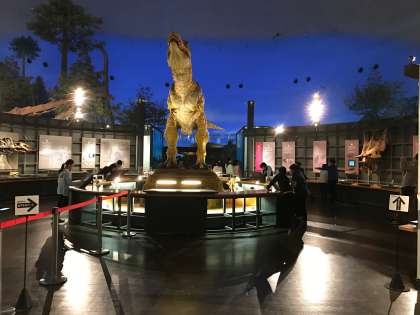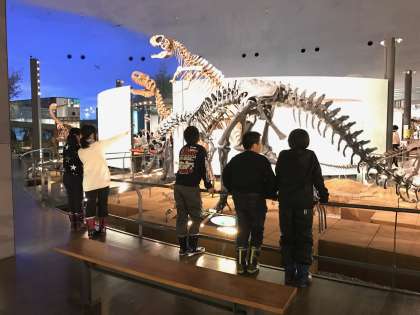 恐竜博物館に到着し、見学しています。