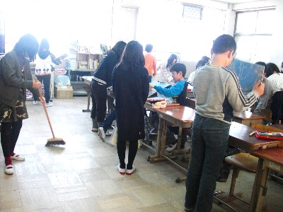 図工の版画では,彫刻刀で彫るので木くずが出てきます。