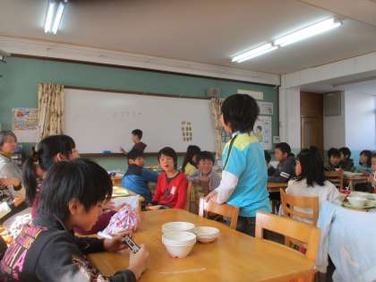 楽しくゲームをした後は,おいしく給食を食べました。