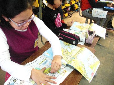 地図帳を使って調べ学習をしています。