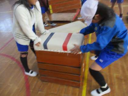 体育館では,跳び箱運動をしています。