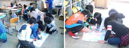 冬休みの間に挑戦したエコライフを振り返り,班の人と交流しました。