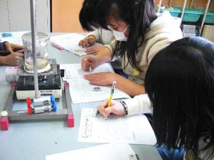 みずのふっとうの様子を観察した後,折れ線グラフを書きました。