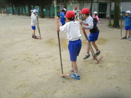 「ようぐあそび」の学習では,竹馬や一輪車に挑戦しています。
