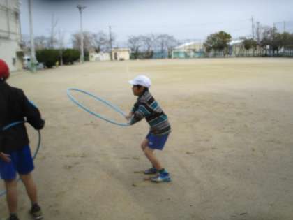 また,フラフープを,自分なりに考え上手に使って,体を動かして遊んでいます。