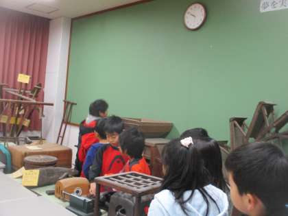 多目的室に置いてある,昔の道具を観察しに行きました。