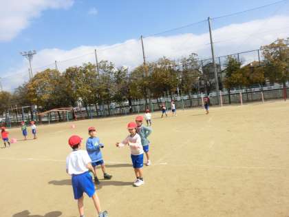 相手のとりやすいボールを投げることに気をつけて活動しました。
