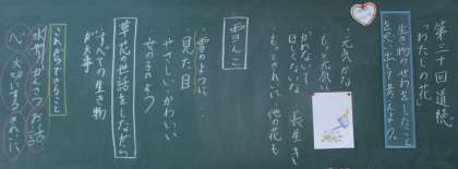 資料「わたしの花」をもとに,花の世話をしているわたしの気持ちを考えることを通して,自然のすばらしさや不思議さに感動し,自然や動植物を大切にする心情を育みました。
