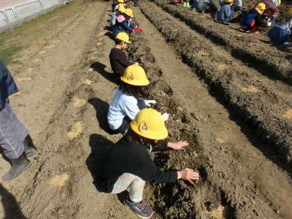 畑でたねいもを植えました。