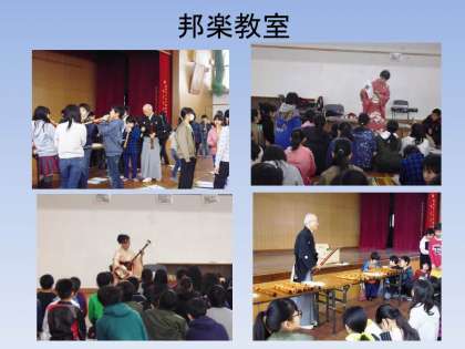 学校支援ボランティアの先生にお越しいただき,邦楽教室を実施しました。尺八は30本くらい持参いただき,音を出す練習をさせていただきました。なかなか思うように音が出なくて,難しい様子でした。筝や三味線の実演もあり,最後にはきれいな曲を演奏していただきました。