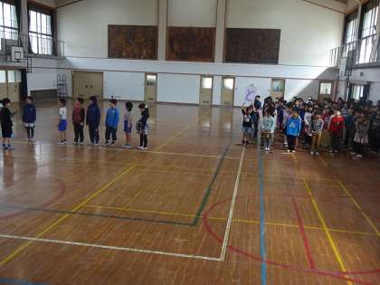 来週に迫った「6年生を送る会」にむけて,初めて学年で練習しました。