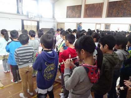 子どもたちはリコーダーを吹いたり,歌を歌ったりしました。