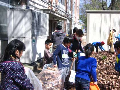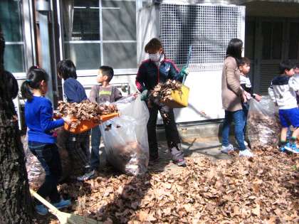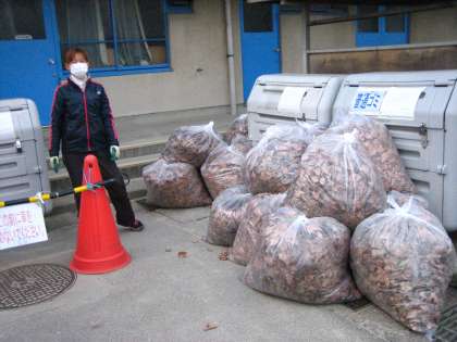 南校舎裏 落ち葉の掃除