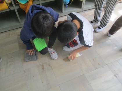 次使う人が気持ちよく過ごせるように,気持ちを込めてごしごし,汚れを落としていました!