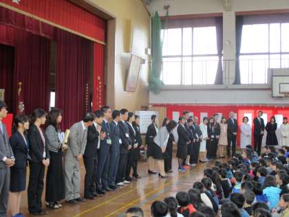 新しい教職員の紹介や,転入生の紹介があり,新たな気持ちで新年度を迎えられているようでした。