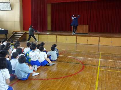 4年生全員が体育館に集まり,学年集会をしました。4年生の学年目標は