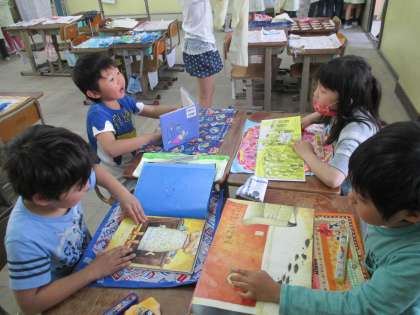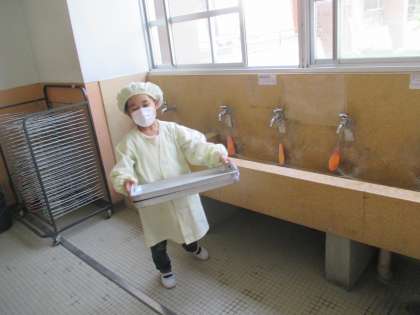 給食時間の風景です。給食当番の人たちは,仕事をていねいに進めています。運ぶときは,焦らず落ち着いています。さて,当番ではない人は,教室で何をしているかというと……。教室で,本を読んで静かに待っています。「待ち方」を考えて待っている姿は素敵です。安心・安全に,給食の配膳ができる環境を,みんなでつくり出せていました。
