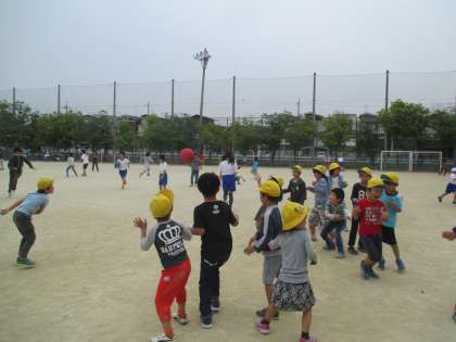 みんなあそびの時間です。今日のみんな遊びは「ドッジボール」です!クラスみんなで集まり,楽しさを分かち合うだけで,にこにこ笑顔が増えます。みんなでいると,なんだか心もぽかぽかします。