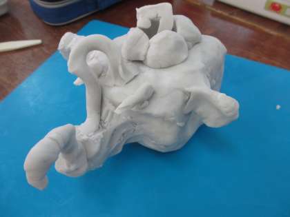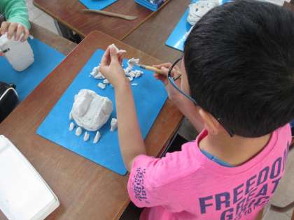 いろいろな道具を使って,手だけでは作れない形や跡をつけて楽しみました。