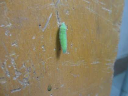 教室の壁に,さなぎになってくっついているのを発見しました。